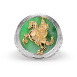 Featuring 18ct gold, this stunning piece represents the dominion of Genghis Khan. The circular face of the ring is framed by rivets of an authentic Mongolian shield. Showcasing a Mongol on a rearing horse in yellow gold, set on either guilloché enamel or 9.3 carats of pristine Siberian Jade (the very source once prized by the Mongols themselves). The sides feature cascading layers based on authentic Mongolian armour, while subtly hidden underneath is a beautifully intricate Mongolian motif.